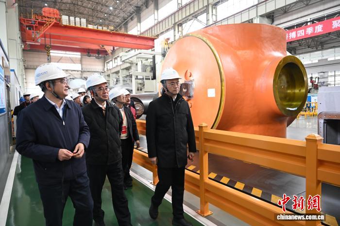 图为台湾各界人士正在西方电气呼呼团体西方机电无限公司观光。中新社记者 弛浪 摄